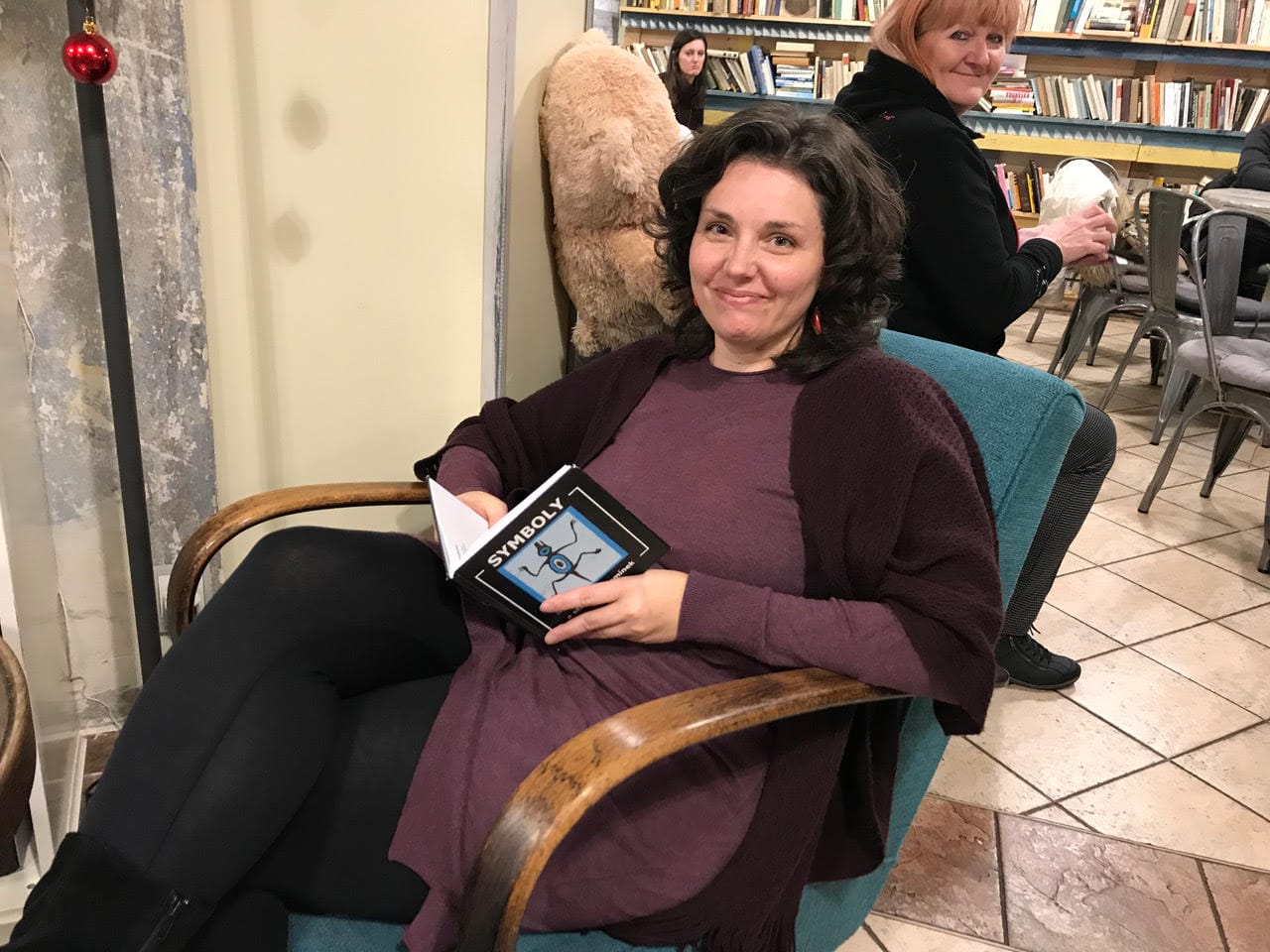 Při vyjmenovávání všech jmen nám majitelka ukazuje fotografie z autorských čtení, které si můžeš prohlédnout níže.