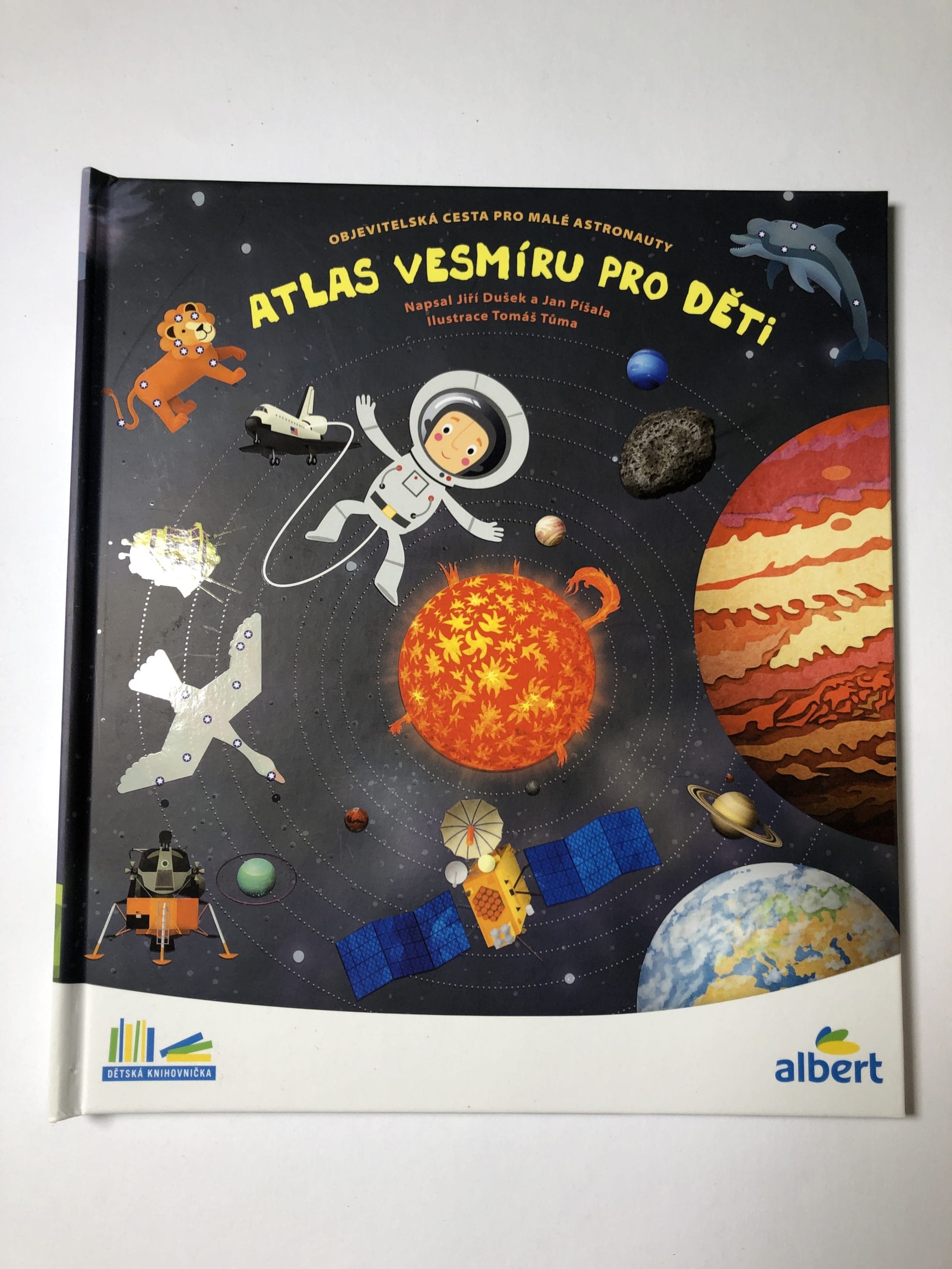 Nádherně ilustrovaný atlas s šesti velkými rozkládacími mapami odhalí všem malým zájemcům skrytá tajemství blízkého i vzdáleného vesmíru. Čeká tě procházka po naší Sluneční soustavě, navštívíš komety a planetky, podnikneš výlet na Měsíc, seznámíš se s prvními astronauty a vyzkoušíš si, jaké je cestovat v raketoplánu nebo žít na vesmírné stanici. Mapa severní i jižní oblohy tě naučí rozpoznávat ta nejznámější souhvězdí.