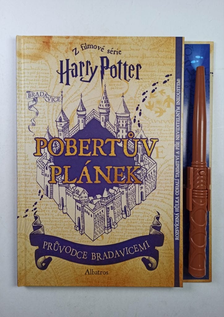 Po celé roky žasli filmoví fanoušci Harryho Pottera nad Pobertovým plánkem, kouzelnou mapou Bradavic, která se poprvé objevila ve filmu Harry Potter a vězeň z Azkabanu. Teď mohou čtenáři poprvé na vlastní kůži okusit filmová kouzla s tímto krásným průvodcem tajemstvími Bradavic, ve kterém najdou také čtyři rozkládací strany obsahující kousky slavného plánku. Až se fanoušci dosyta pokochají textem, mohou otevřít hůlku, která je zároveň také fix s neviditelným inkoustem a světlo.